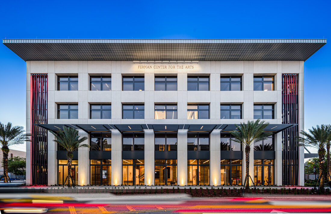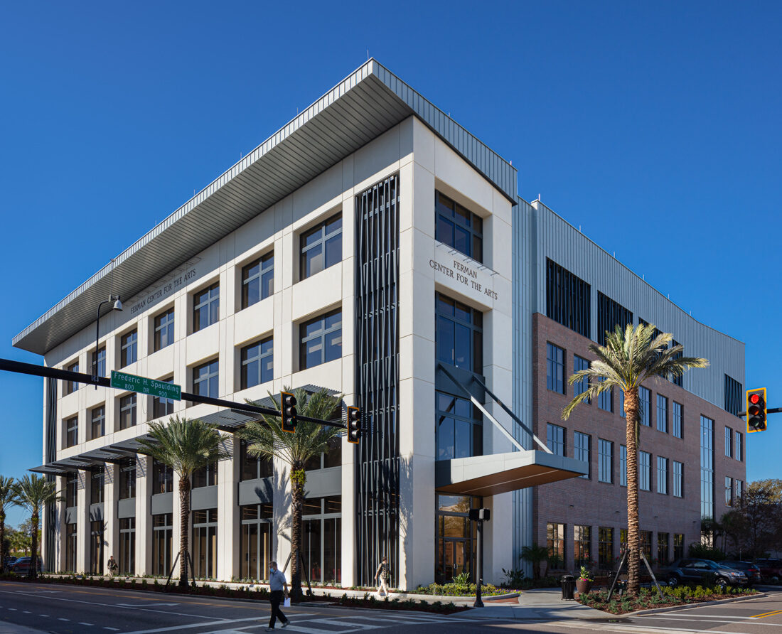 The Ferman Center for the Arts at the University of Tampa is a state-of-the-art, 90,000-square-foot facility dedicated to fostering creativity and innovation in the fine and performing arts. Opened in Spring 2021, the four-story building serves as a central hub for disciplines such as music, art, design, speech, theatre, dance, communication, philosophy, and film .