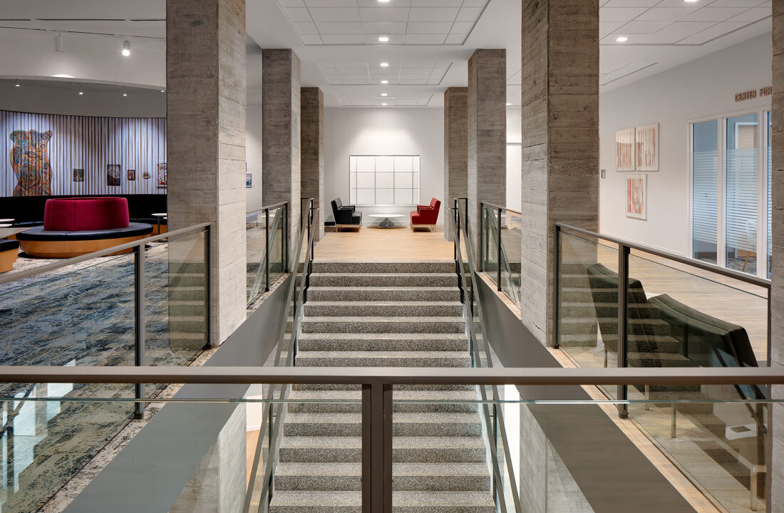 • Second Floor: Houses the Center for Public Speaking, a large painting studio, 20 small advanced painting project studios, and student study gallery spaces .