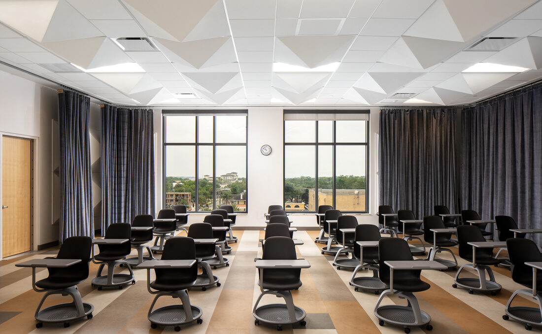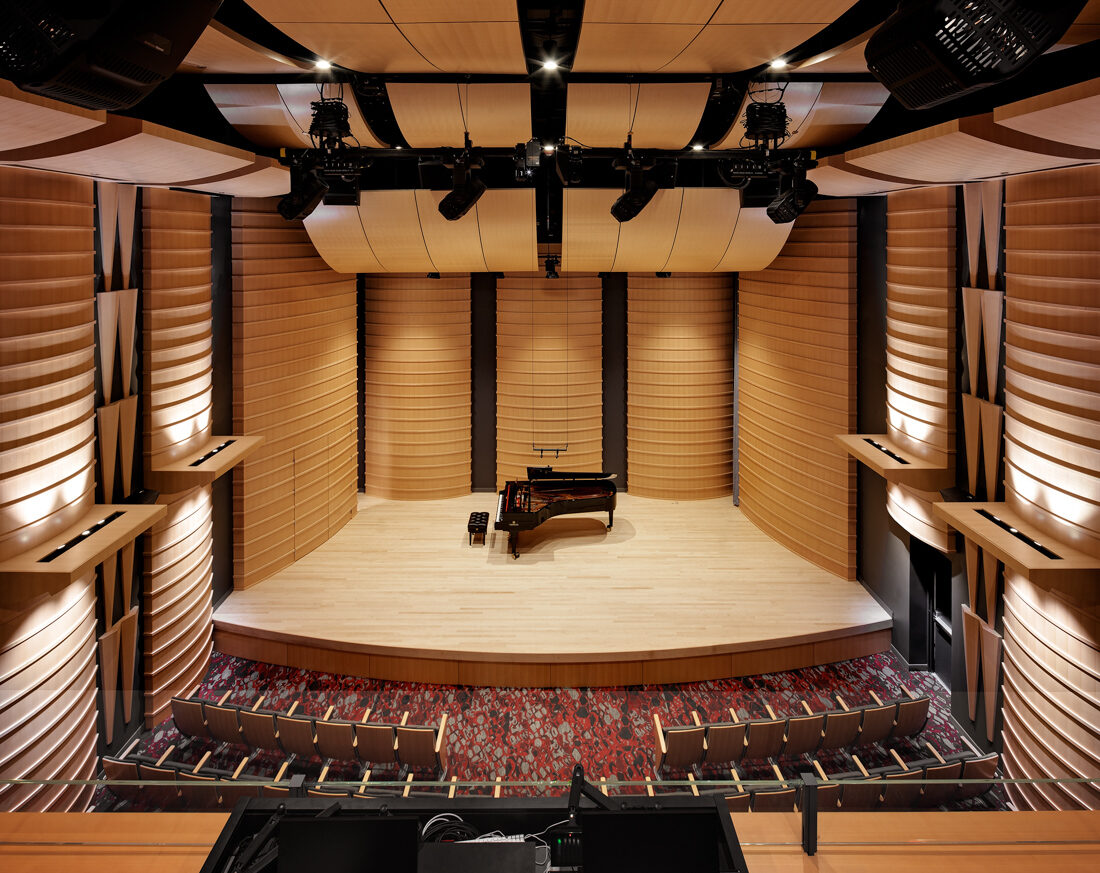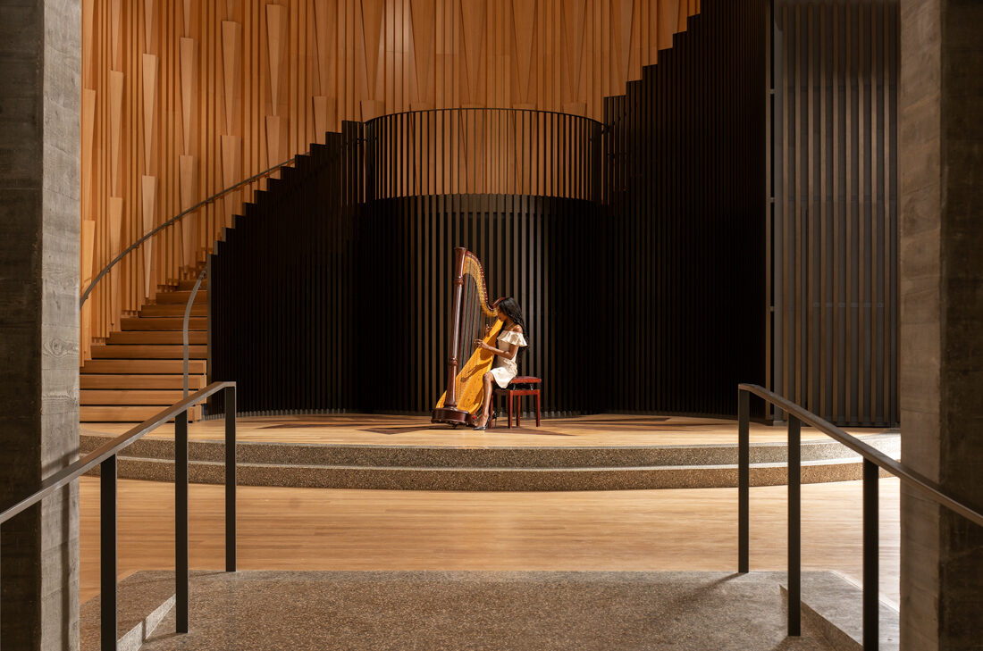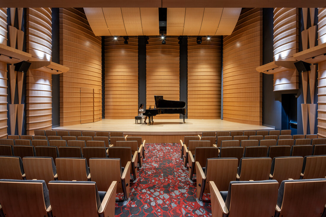 • Fourth Floor: Dedicated to music, this floor includes 12 music practice rooms, music teaching studios, instrument storage, three recording studios with a professional-level control room, two sound-insulated music classrooms, study spaces, and a computer lab .