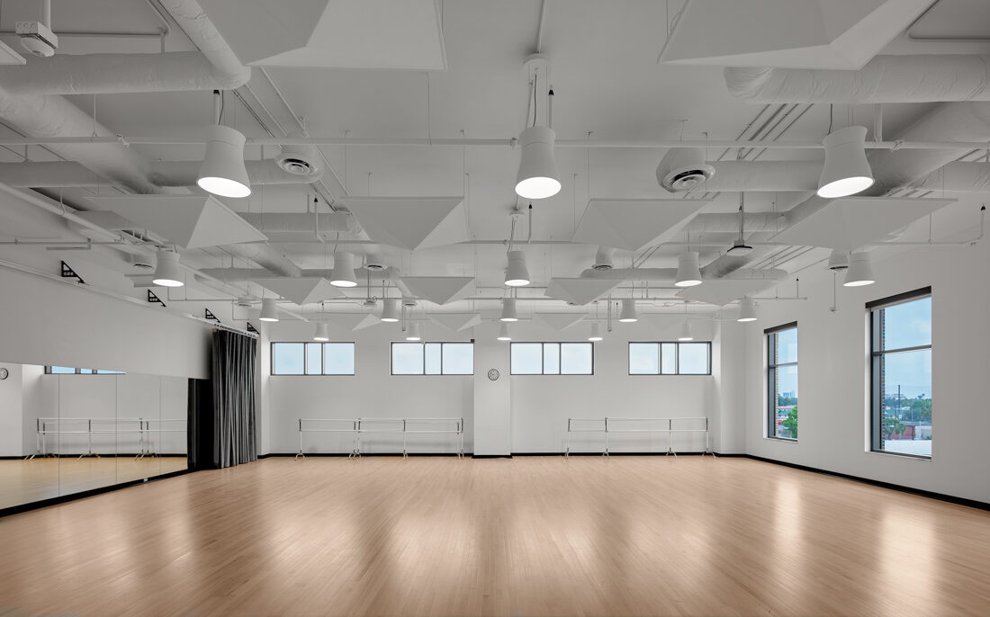 • Third Floor: Contains a black box theater, two large dance studios, and general and seminar classrooms .