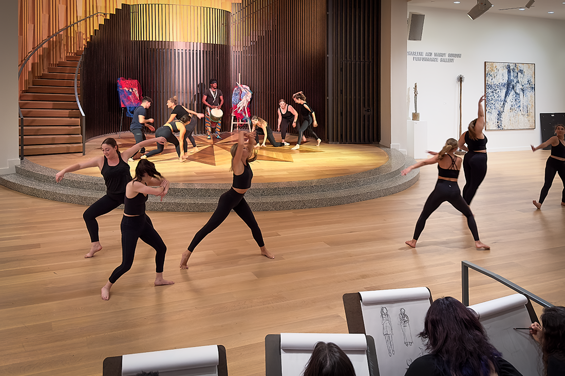 • First Floor: Features the 200-seat Charlene A. Gordon Theater, the Saunders Foundation Art Gallery, an elevated performance galery, a sculpture studio, wood and metal fabrication shops, and an outdoor art courtyard equipped with casting/sand pit areas and furnaces .