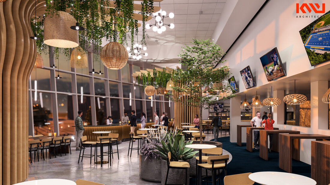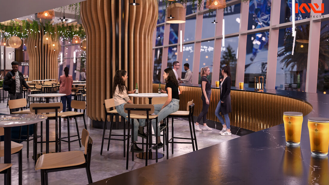 The Market on Four at Amalie Arena in Tampa, is a vibrant culinary destination that brings together a diverse array of local flavors and fan favorites. Located on the arena’s fourth level, this market-style food hall is designed to enhance the game-day experience, by providing a garden like festive experience with tree like sculptures that energizes the two-story space. It claims the longest bar in Tampa and has views of the city skyline.