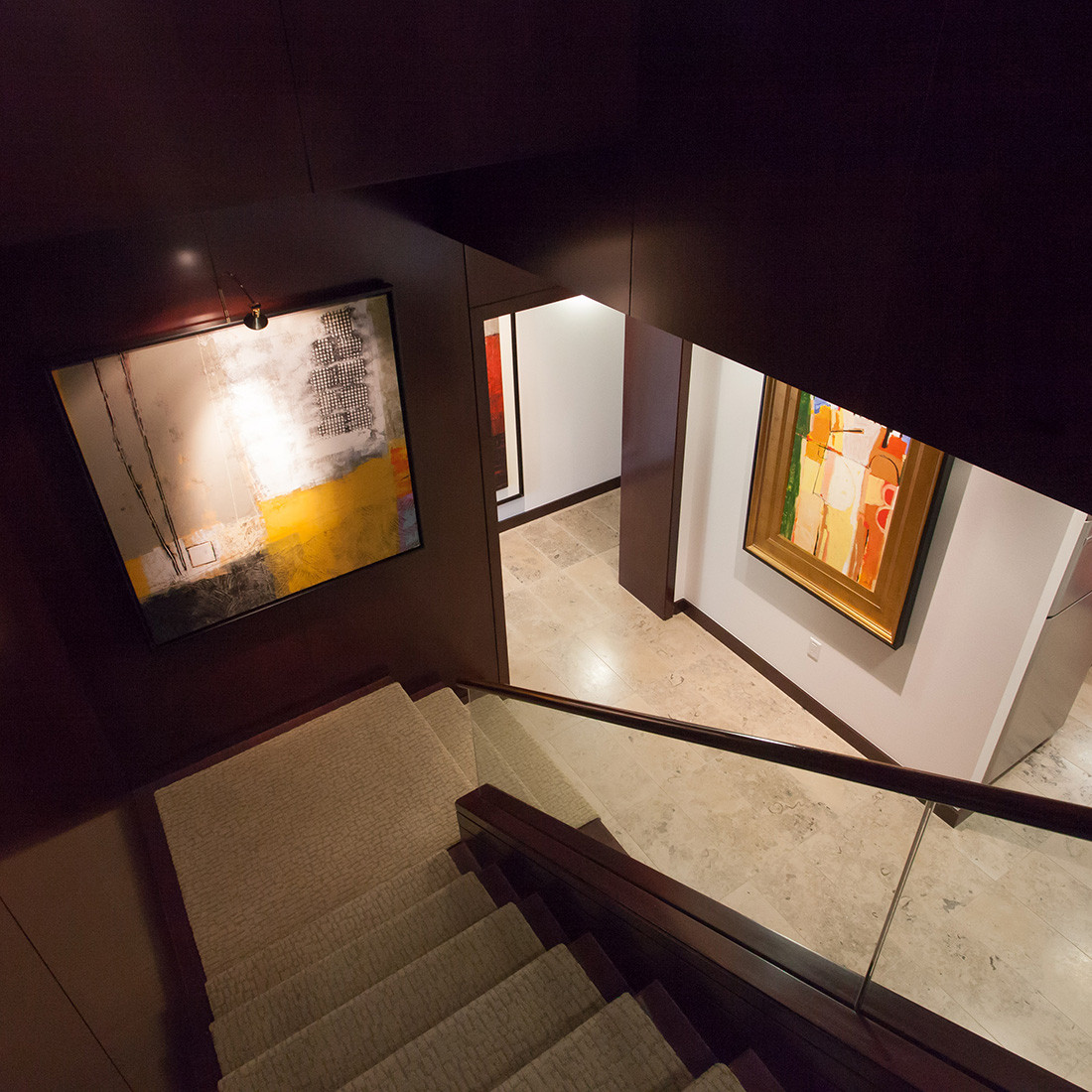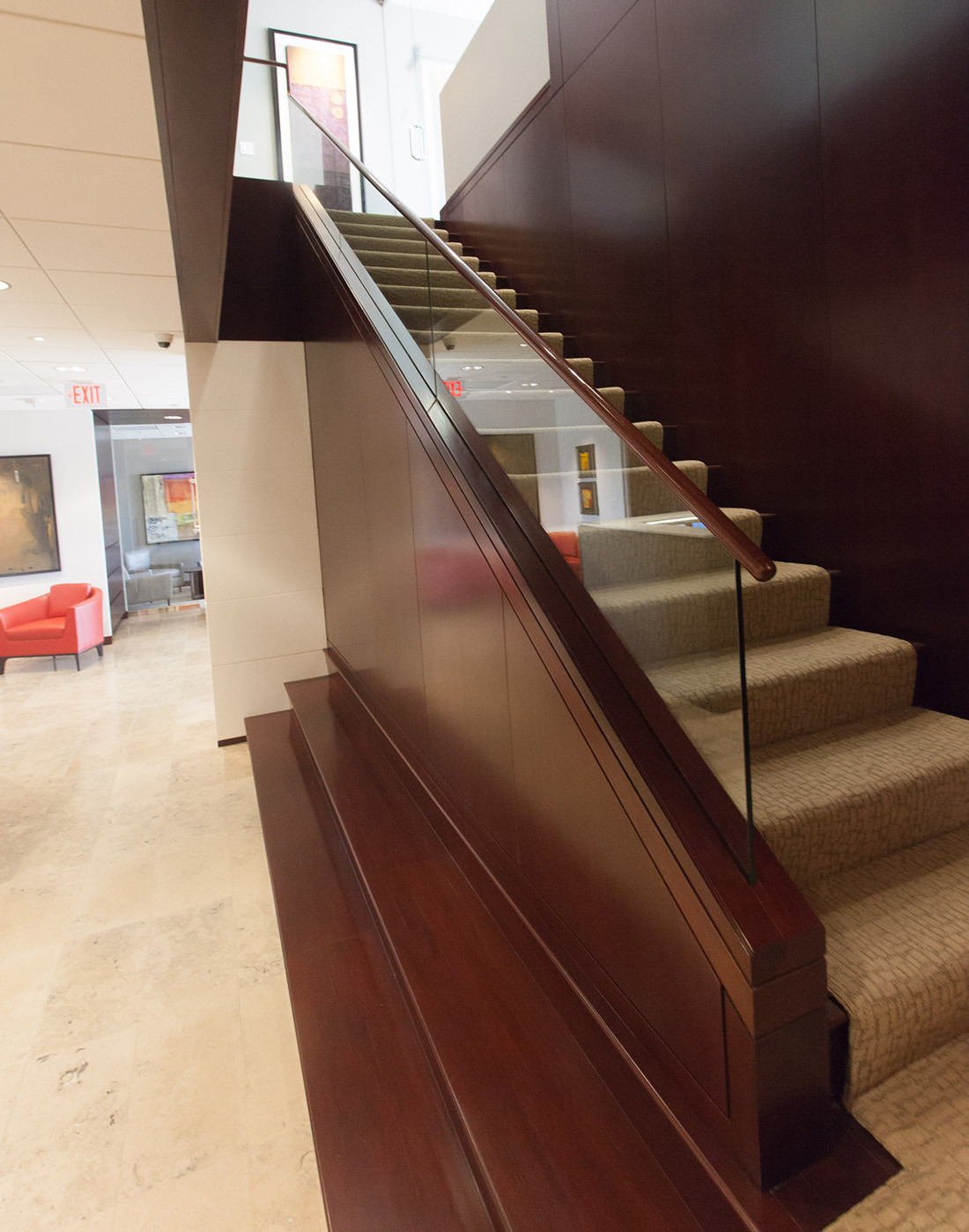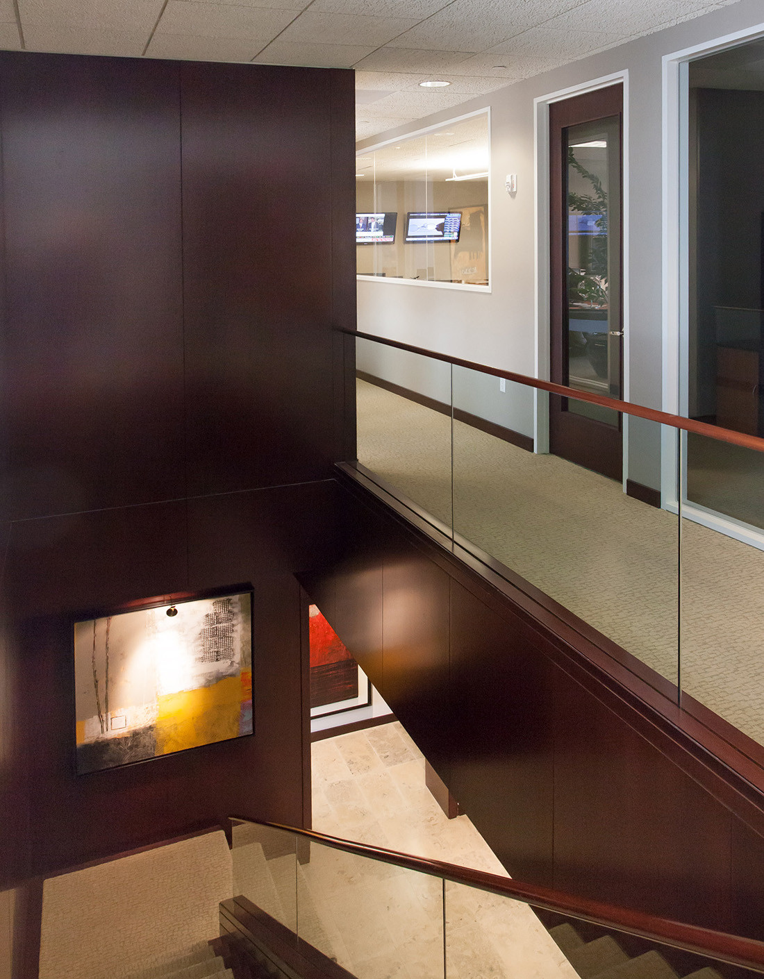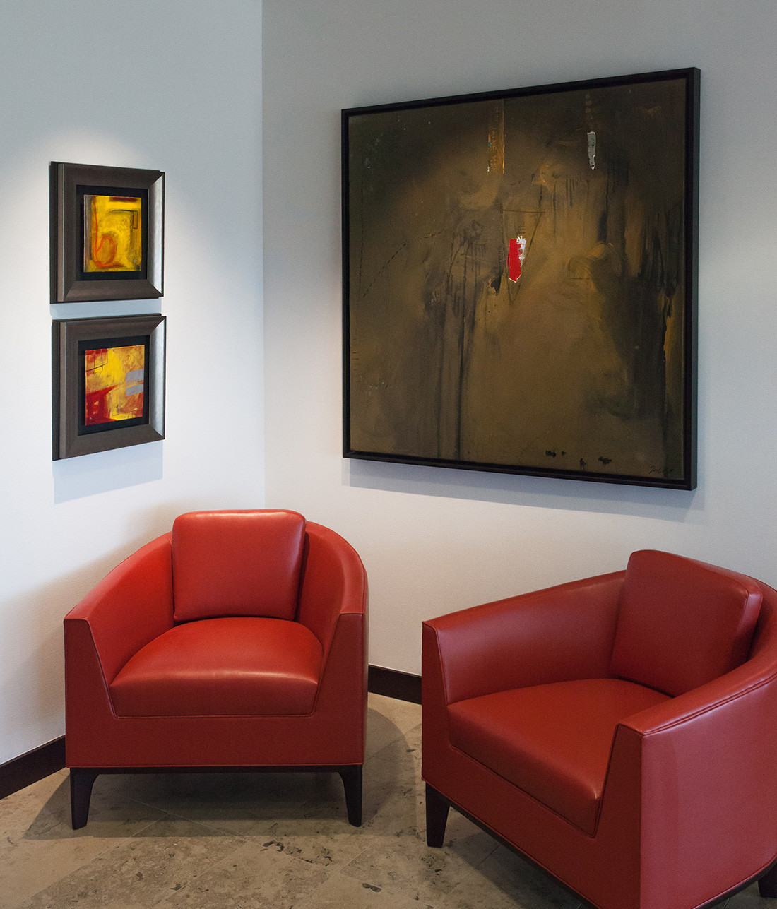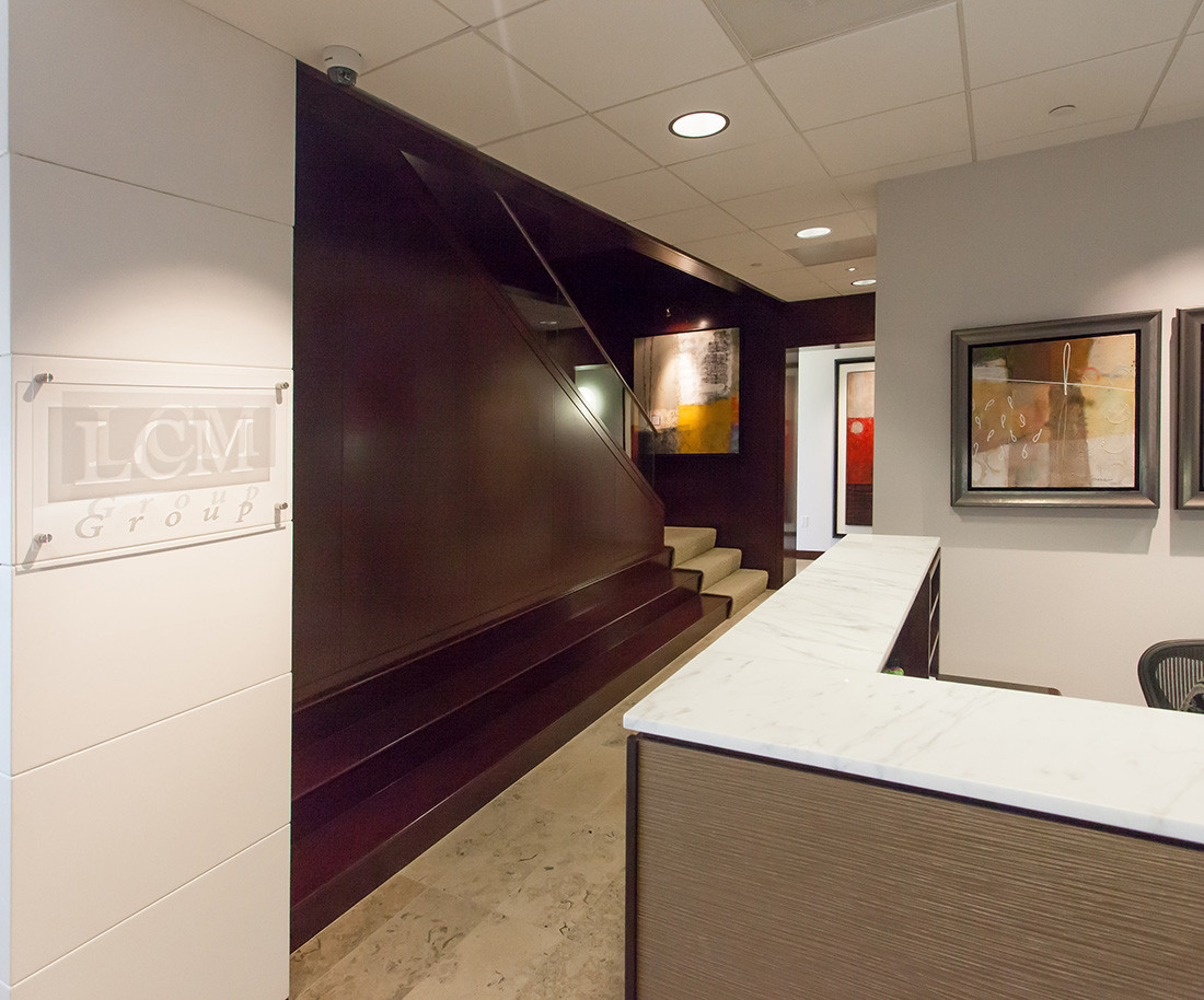 LCM Global Partners, LLC is a registered investment advisory firm located in Tampa, Florida. The firm manages 227 accounts totaling an estimated $145,000,000 in assets under management. Its operations include 8 employees and is categorized as providing investment advisory services to 300 clients. They decided to move their offices from the Tampa Palms to the downtown Wells Fargo building. The space was designed to showcase the firm’s modern art collection. Rich stone and wood paneling was used to create a rich, modern professional environment.